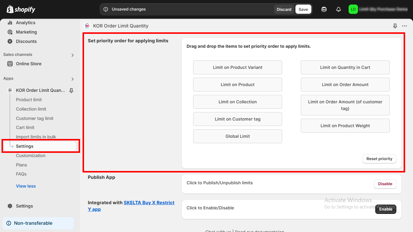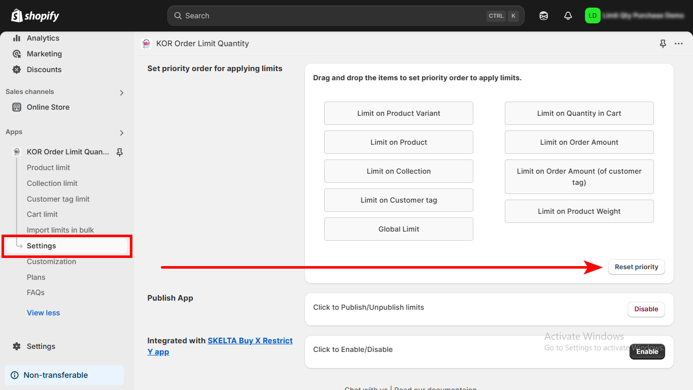 With this feature, you can easily control which limit priority order your store should consider first. Initially, the following limit priority order is set by default.
