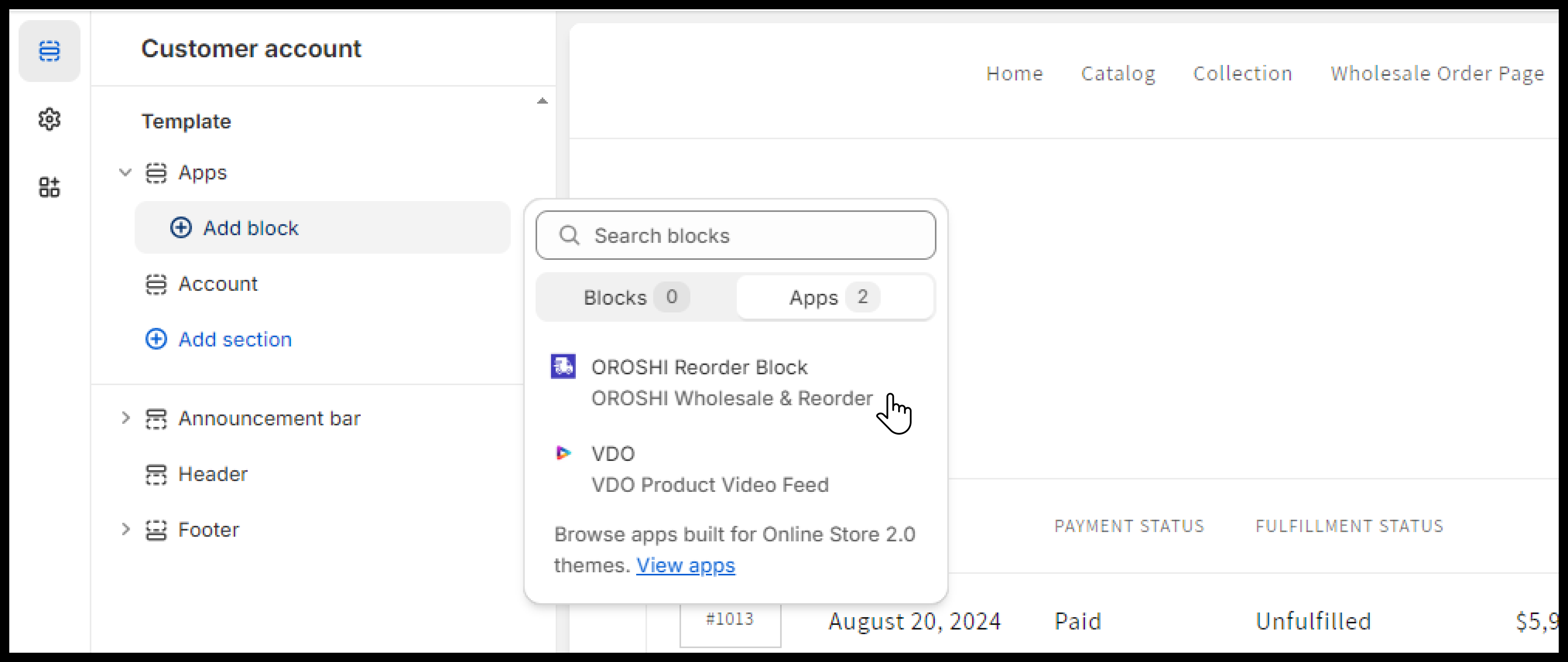You need to follow these easy steps to add the app block to enable the feature of repeating orders.