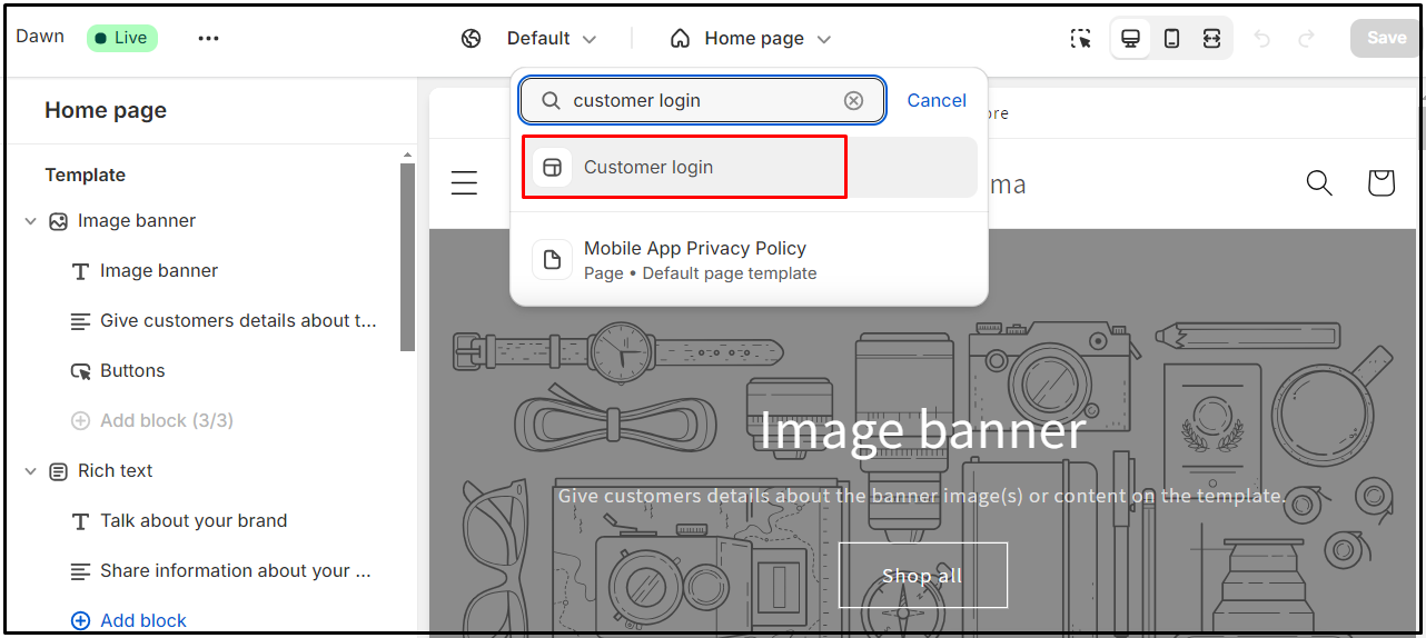Search for the template of **Customer login** & select it.