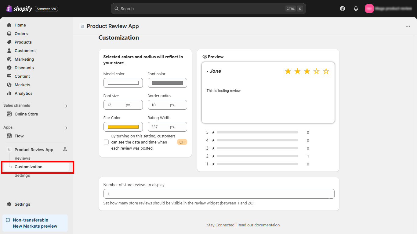 This is the section where merchants can customize the look of how they want to display the reviews of their product reviews.
