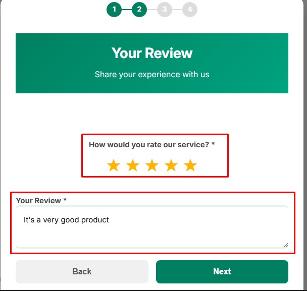 * Customers begin by entering their first name, last name, and email address. This information helps verify the review and ensures authenticity.