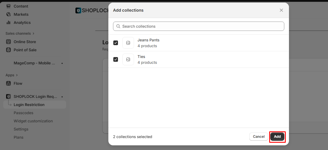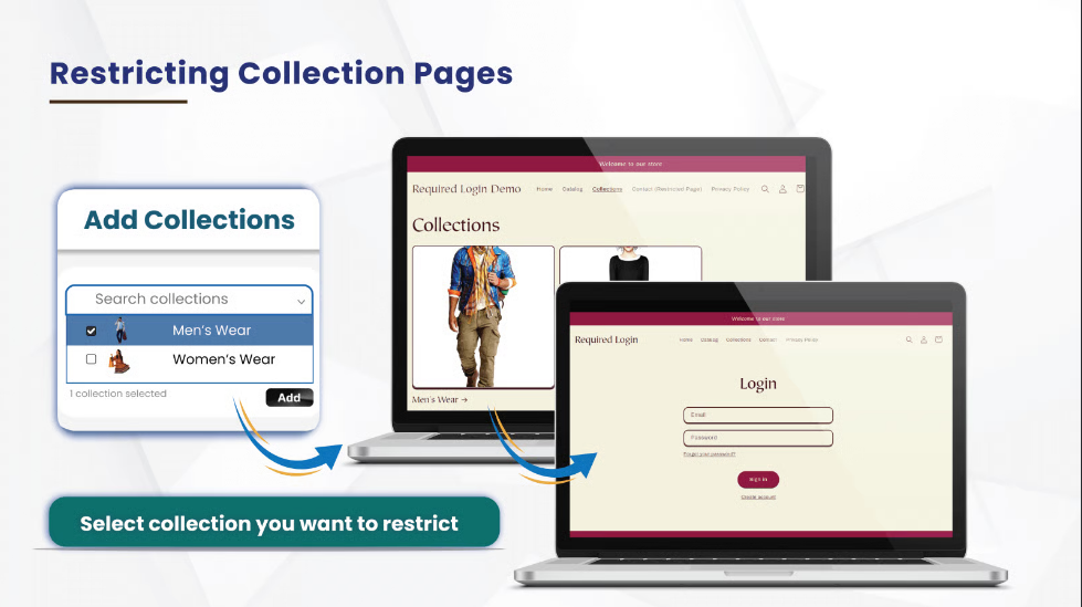 Now, your guest customers will be asked to log in to your store to access the **Jeans Pants** and **Ties** collection.